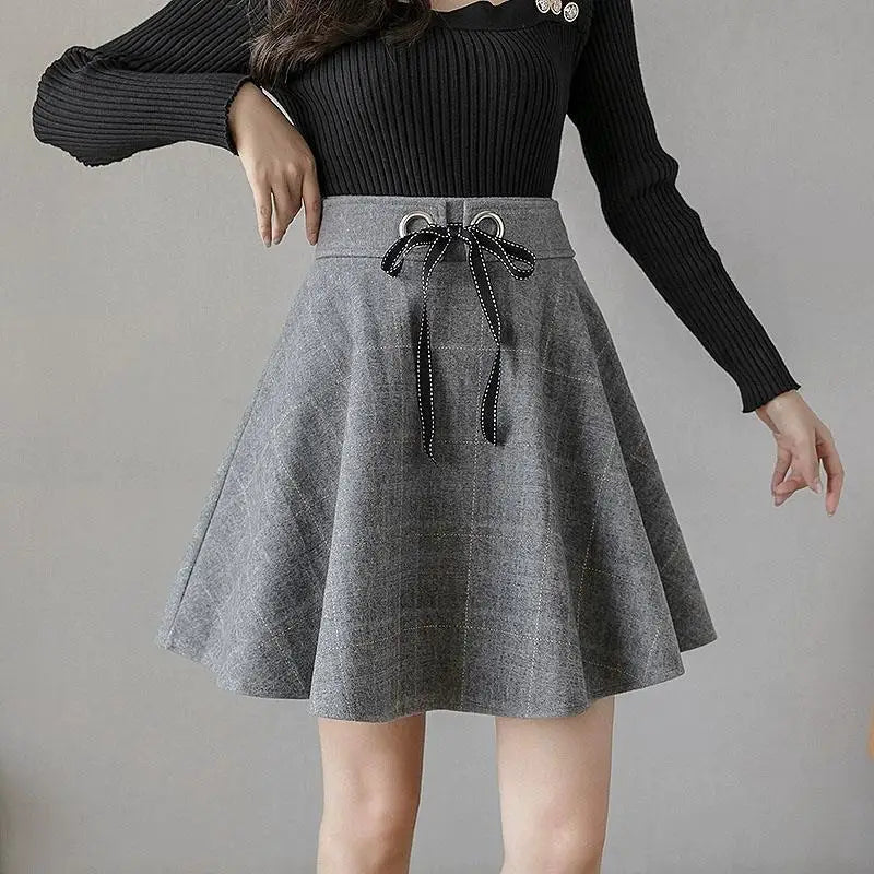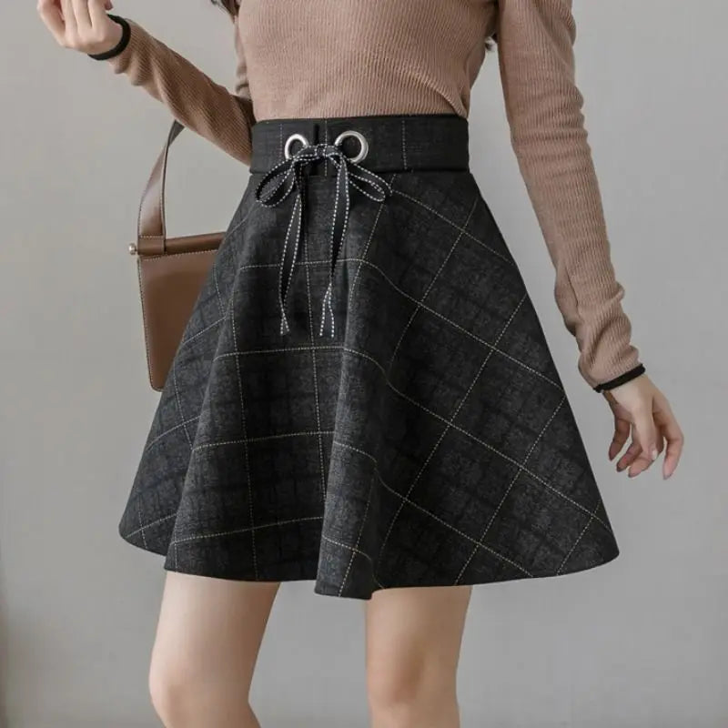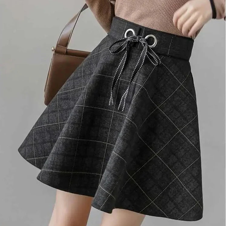 This mini skirt features a high-waisted design with an elastic waistband for a secure and adjustable fit. The structured silhouette maintains shape while allowing ease of movement, and the classic plaid pattern provides visual definition without added embellishment. Its short length makes it versatile for a range of settings, from office wear to street outfits. The overall design balances structure and flexibility, making it suitable for layering with tops, blazers, or knitwear.