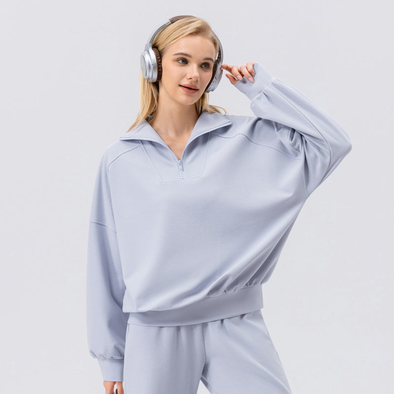 Women Spring Half-Zip Long Sleeve Sports Sweatshirt with Loose Fit