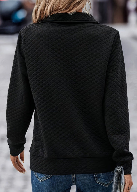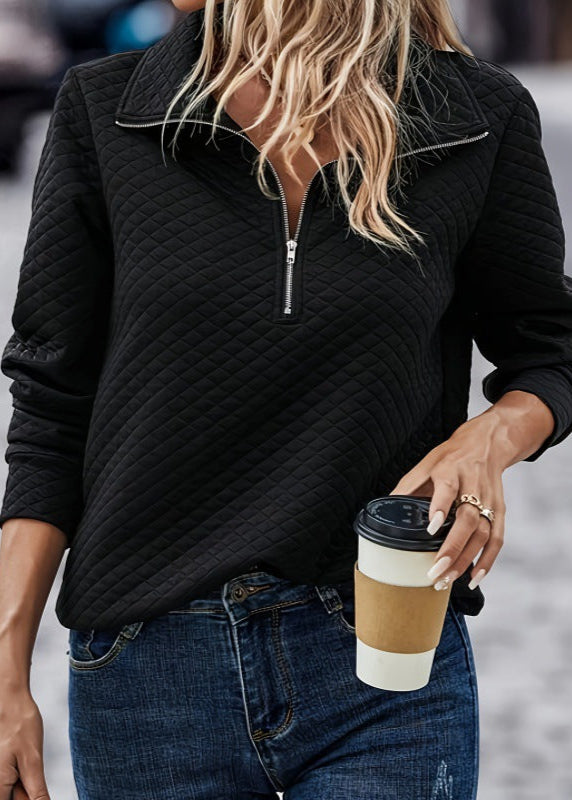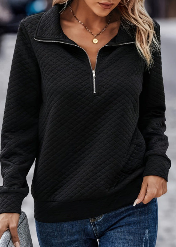 A medium-thickness sweater designed with a high turtleneck and front zipper for adjustable coverage. The loose fit allows for layering, while the diamond lattice pattern adds subtle texture to the design. Suitable for cooler autumn days, this sweater pairs well with various bottoms for versatile wear.