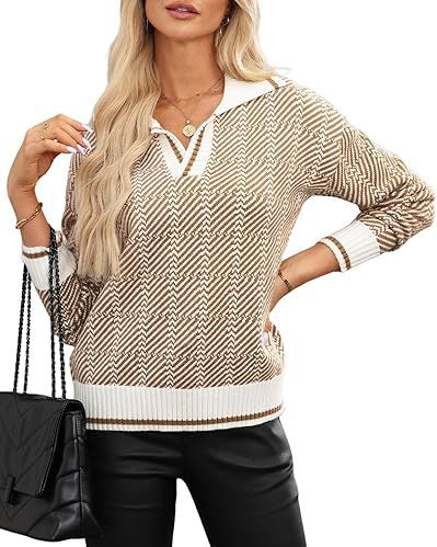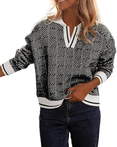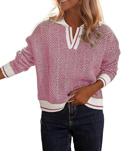 This women’s pullover knit top features a structured lapel collar and standard long sleeves. Its simple silhouette is paired with solid color options, making it easy to layer or wear on its own. Available in multiple colors and sizes S to XL, this single-piece design has a regular fit and straight hemline, suitable for everyday wear.