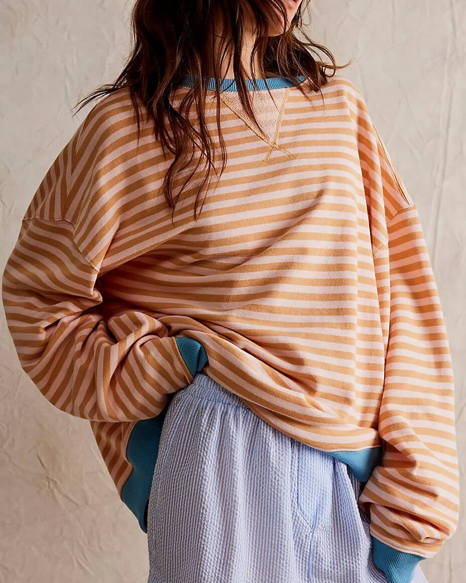 This pullover features a striped pattern and a slim fit silhouette, creating a neat and versatile piece suitable for daily wear. The round neckline provides a classic finish, while the long sleeves make it appropriate for layering with various outfits. Its simple yet structured design ensures easy pairing with both casual and semi-formal looks, making it a practical addition to any wardrobe.