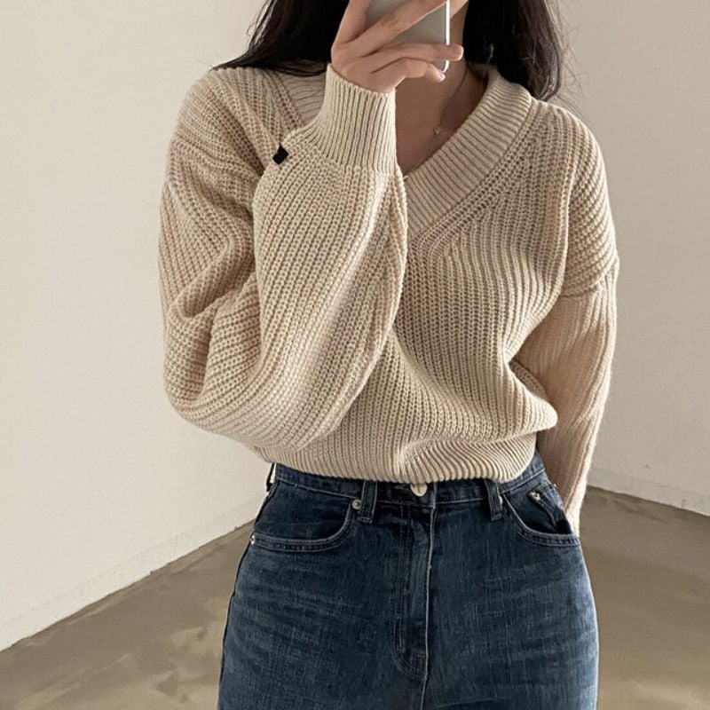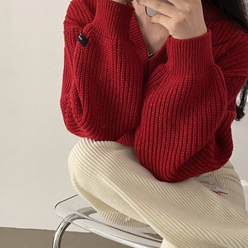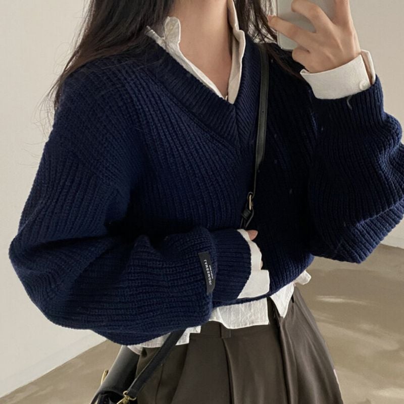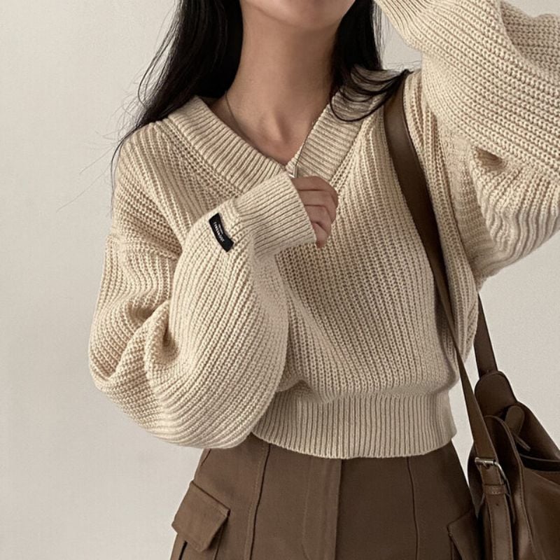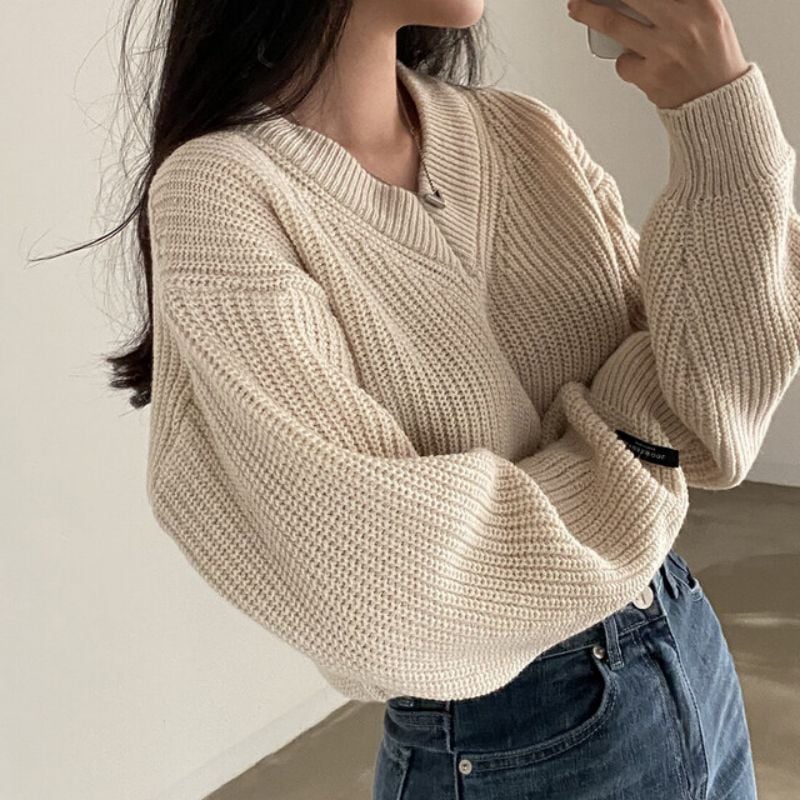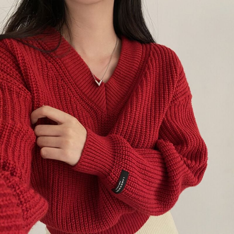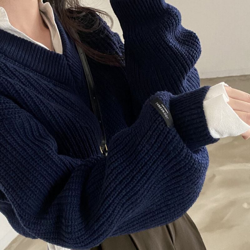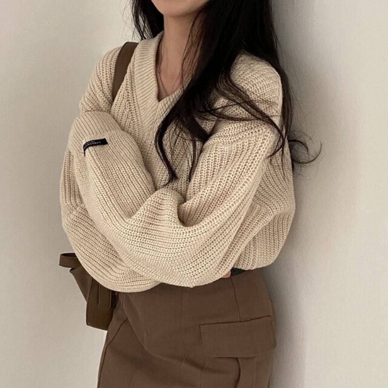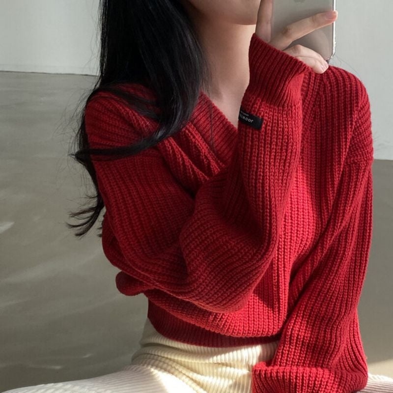 Title: Women Pullover Sweater with Letter Patch and Long Sleeves