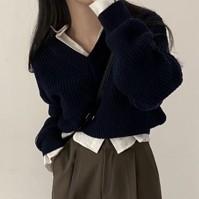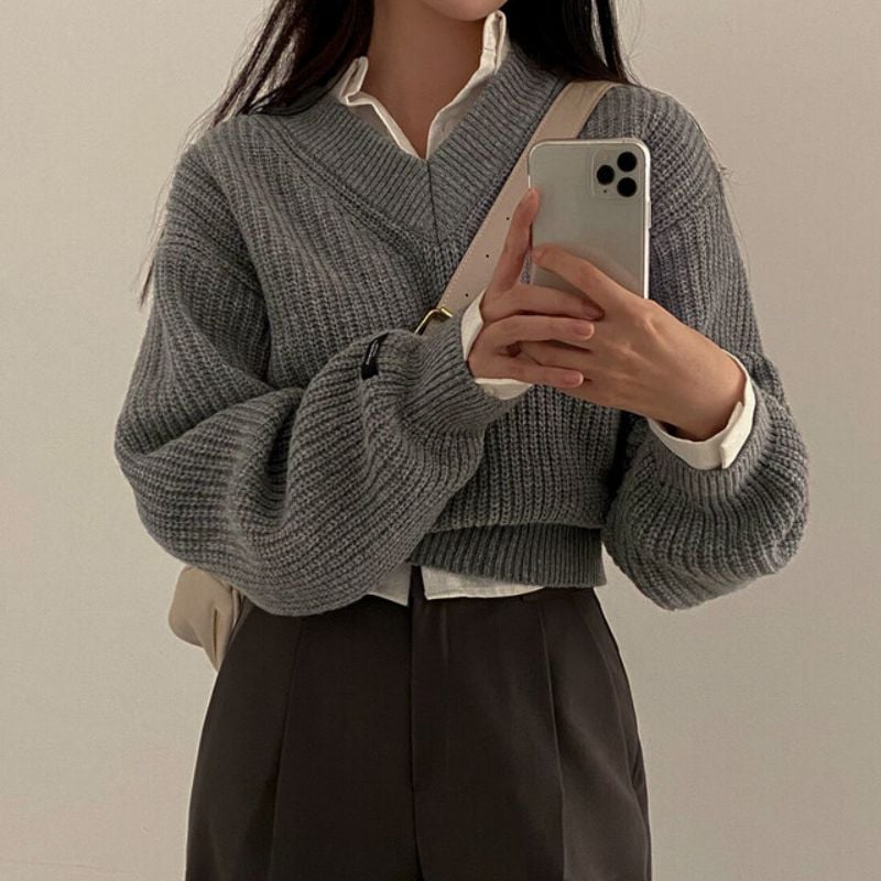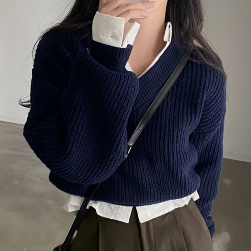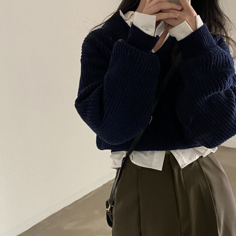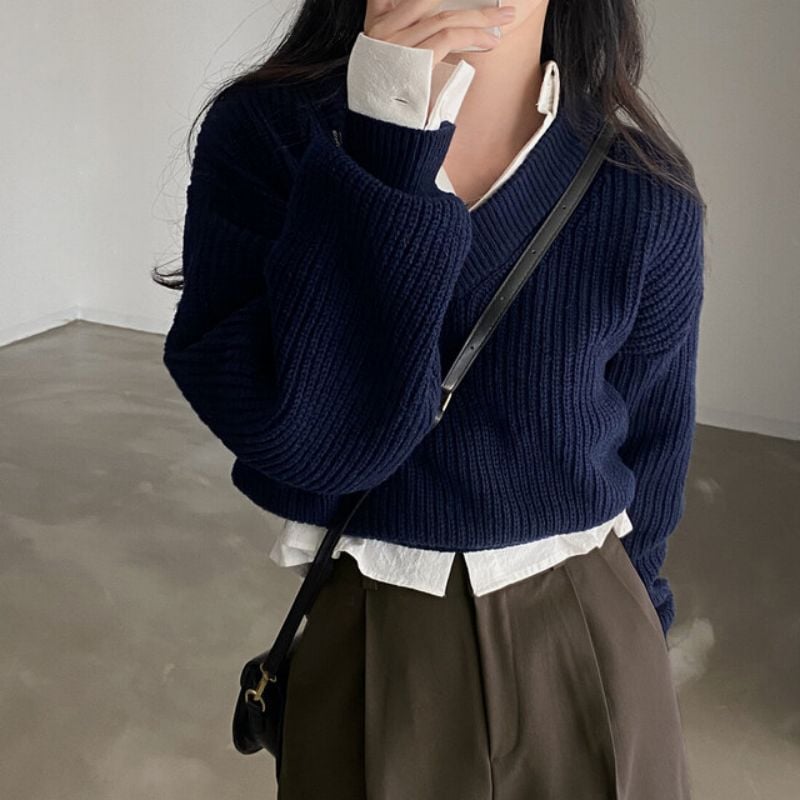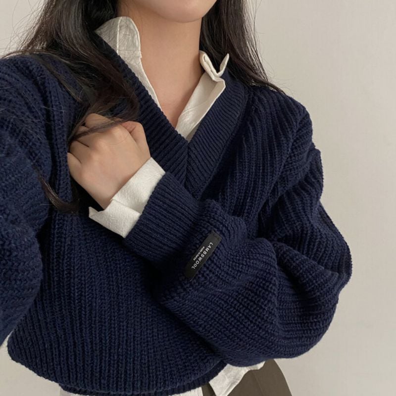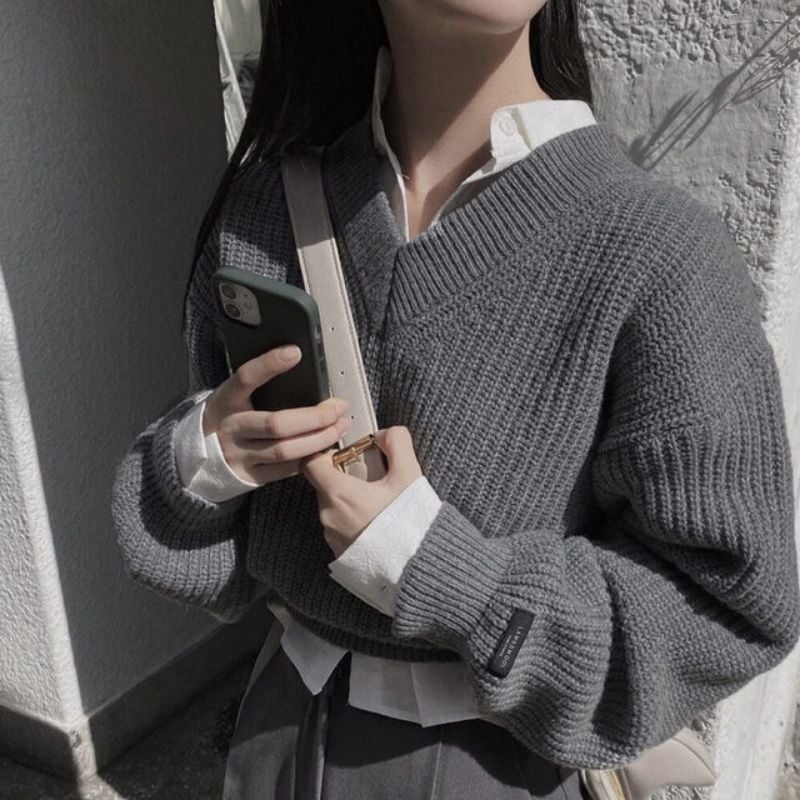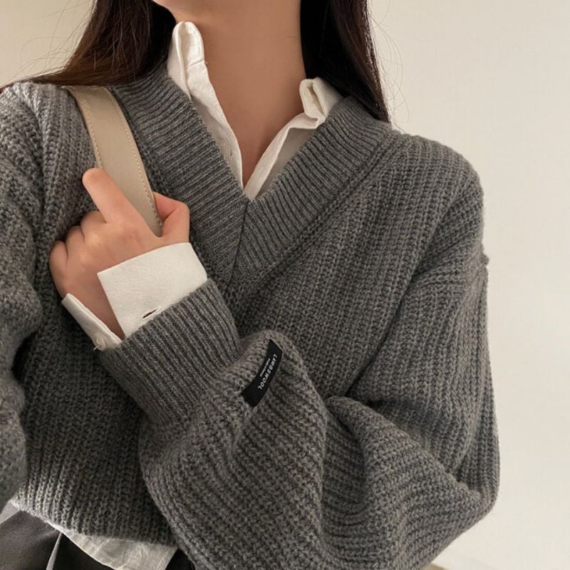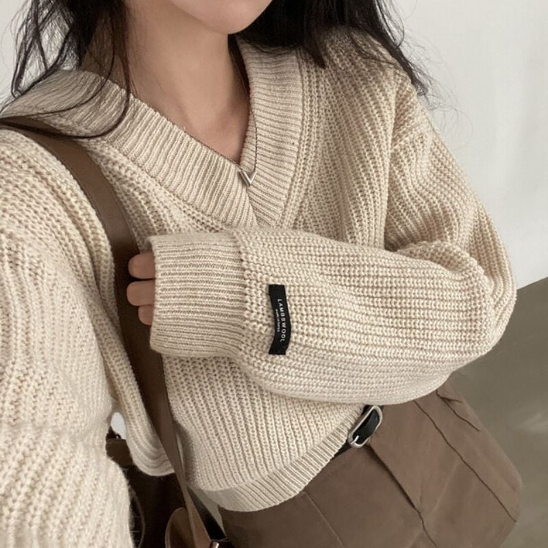 Title: Women Pullover Sweater with Letter Patch and Long Sleeves