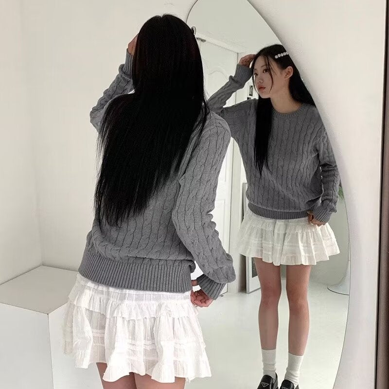 Title: Women Sweater Cable Knit Round Neck Long Sleeve Pullover