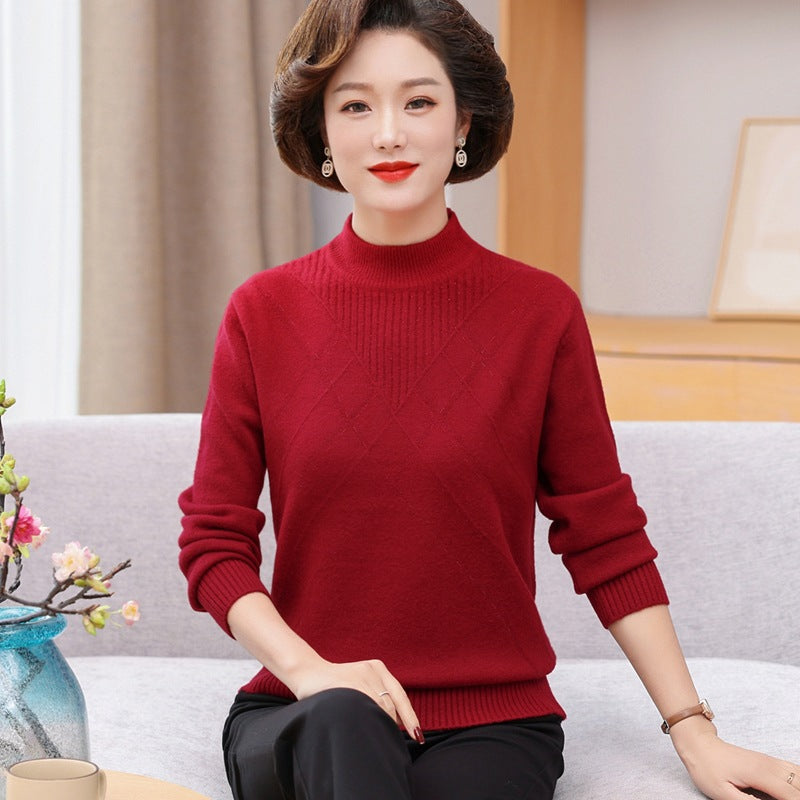 Title: Women Mock Neck Knitted Pullover Sweater with Thick Texture