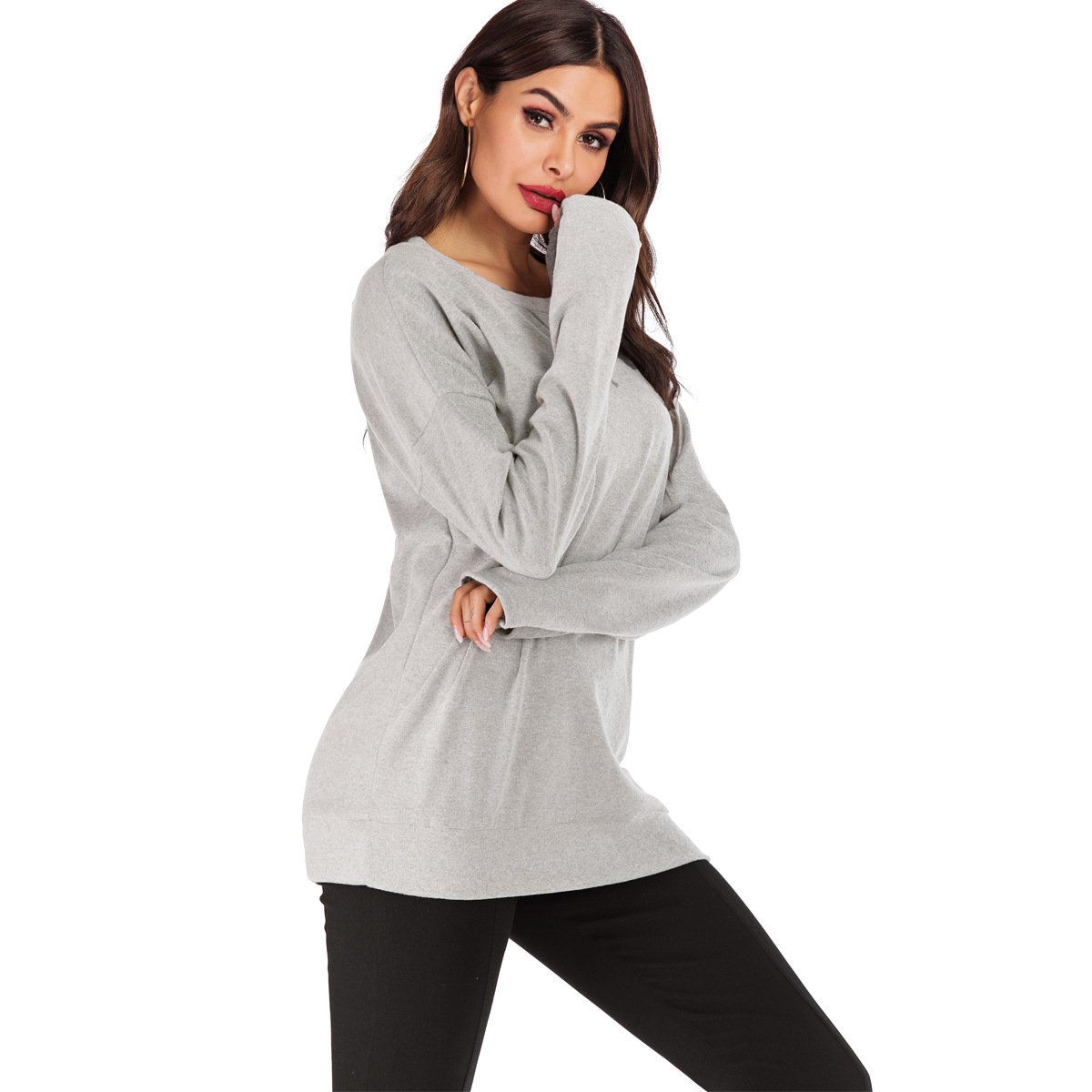 Title: Women Pullover Long Sleeve Round Neck Loose Fit Solid Color Sweater