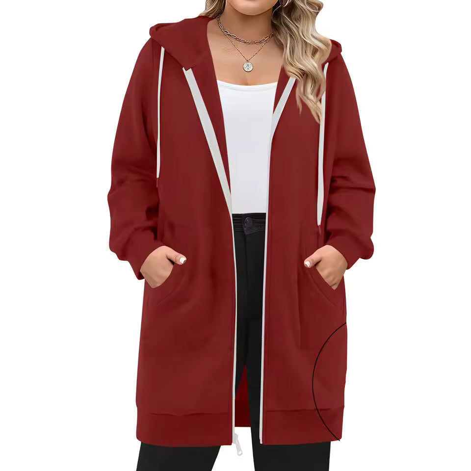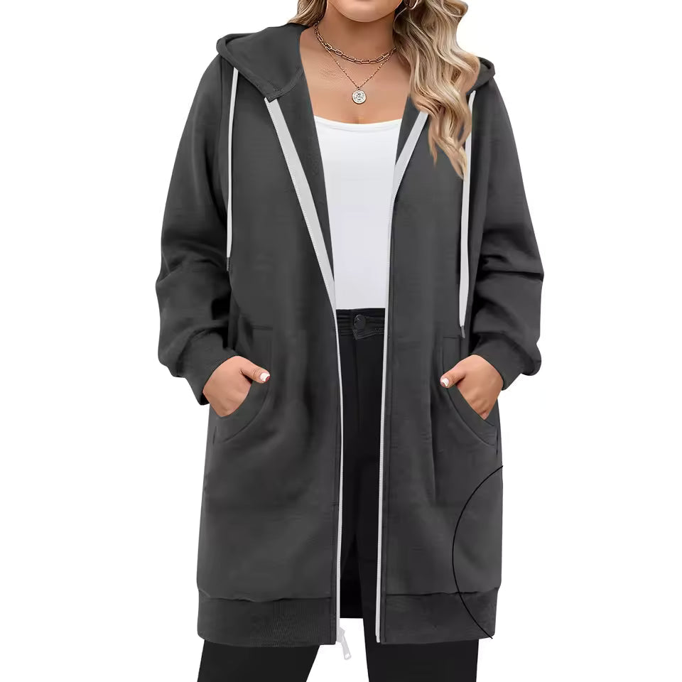 This hoodie features a relaxed fit with a hood and functional front pockets, designed for daily wear. The soft interior and breathable exterior provide ease of movement and a smooth silhouette. Its versatile design works well with trousers, jeans, or skirts, suitable for both indoor and outdoor activities.