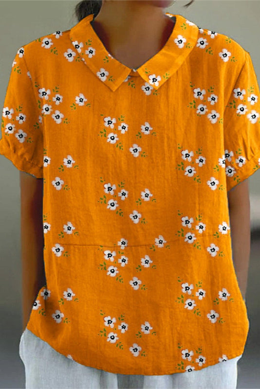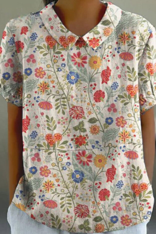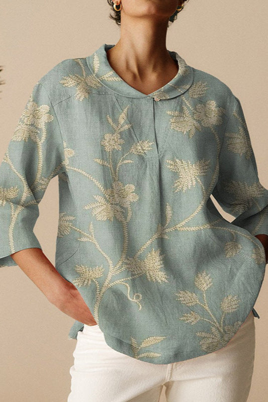 Women Spring Long-Sleeved Blouse with Floral Print and Button-Up Front
