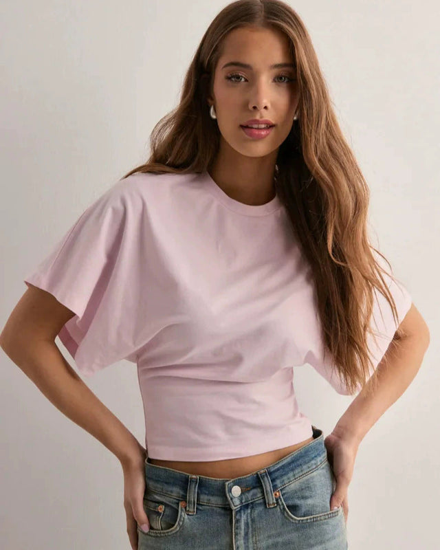 - Sleeve style: Short batwing sleeves for a relaxed silhouette