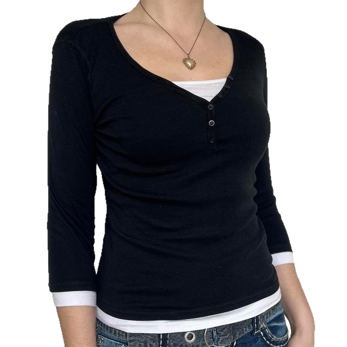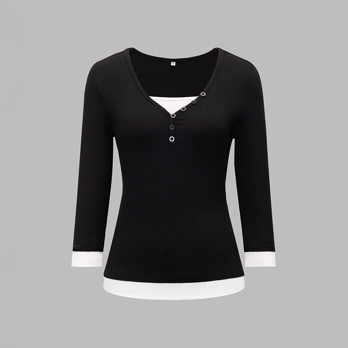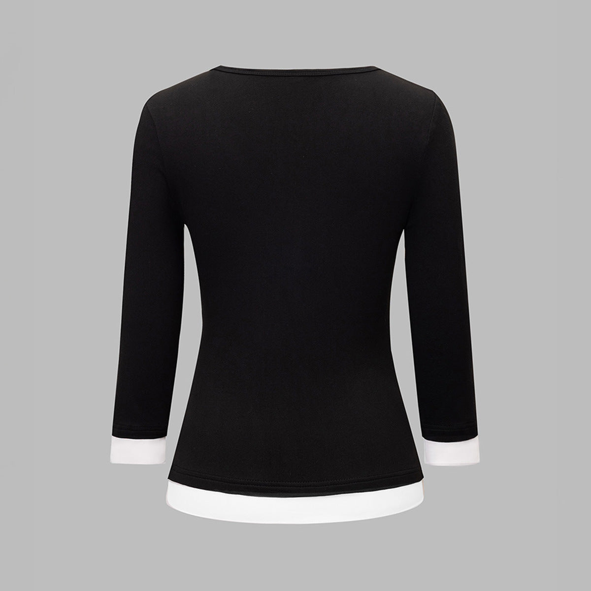 Title: Women Long Sleeve Pullover Slim Fit T-Shirt with Splicing Detail