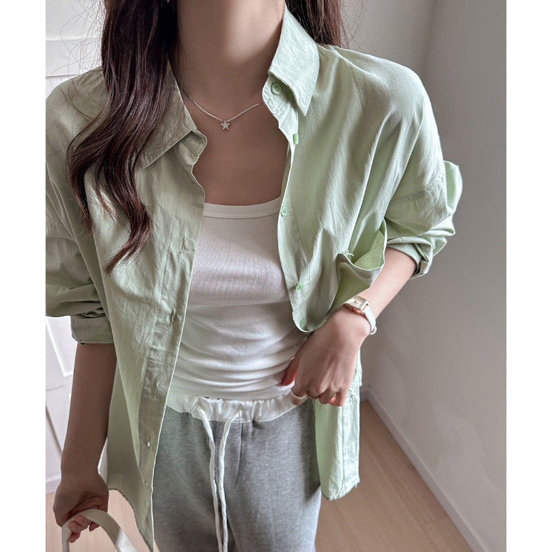 Title: Women Loose Fit Long Sleeve Solid Color Shirt with Plus Size Options