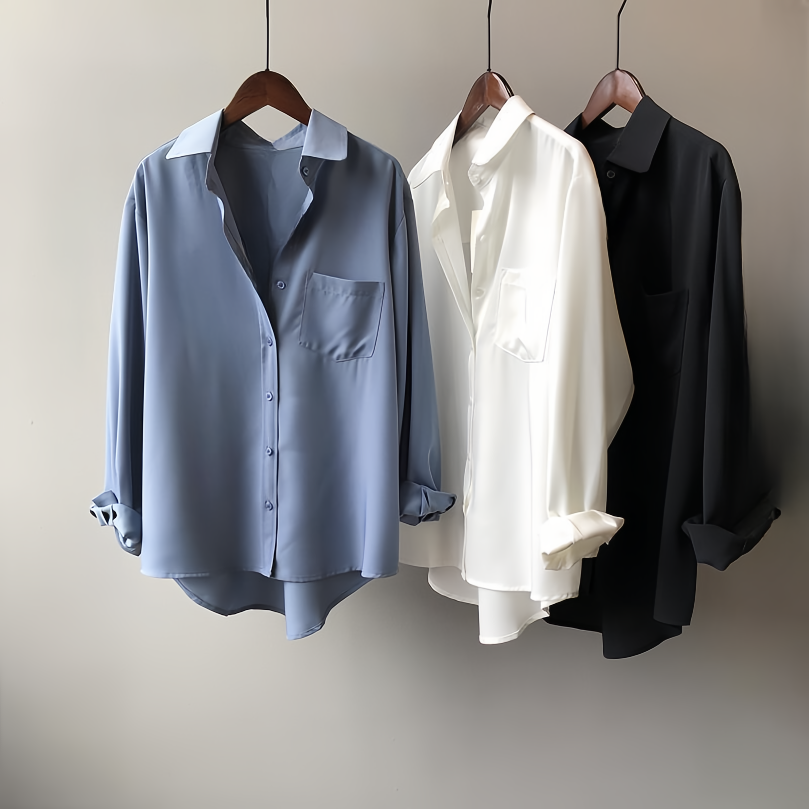 This blouse shirt is designed with a clean tailored finish combined with a soft draping silhouette, making it suitable for both professional and casual settings. Its lightweight structure allows easy layering under jackets or pairing with trousers and skirts. With precise detailing and a versatile cut, it transitions seamlessly across different occasions while maintaining a refined look.