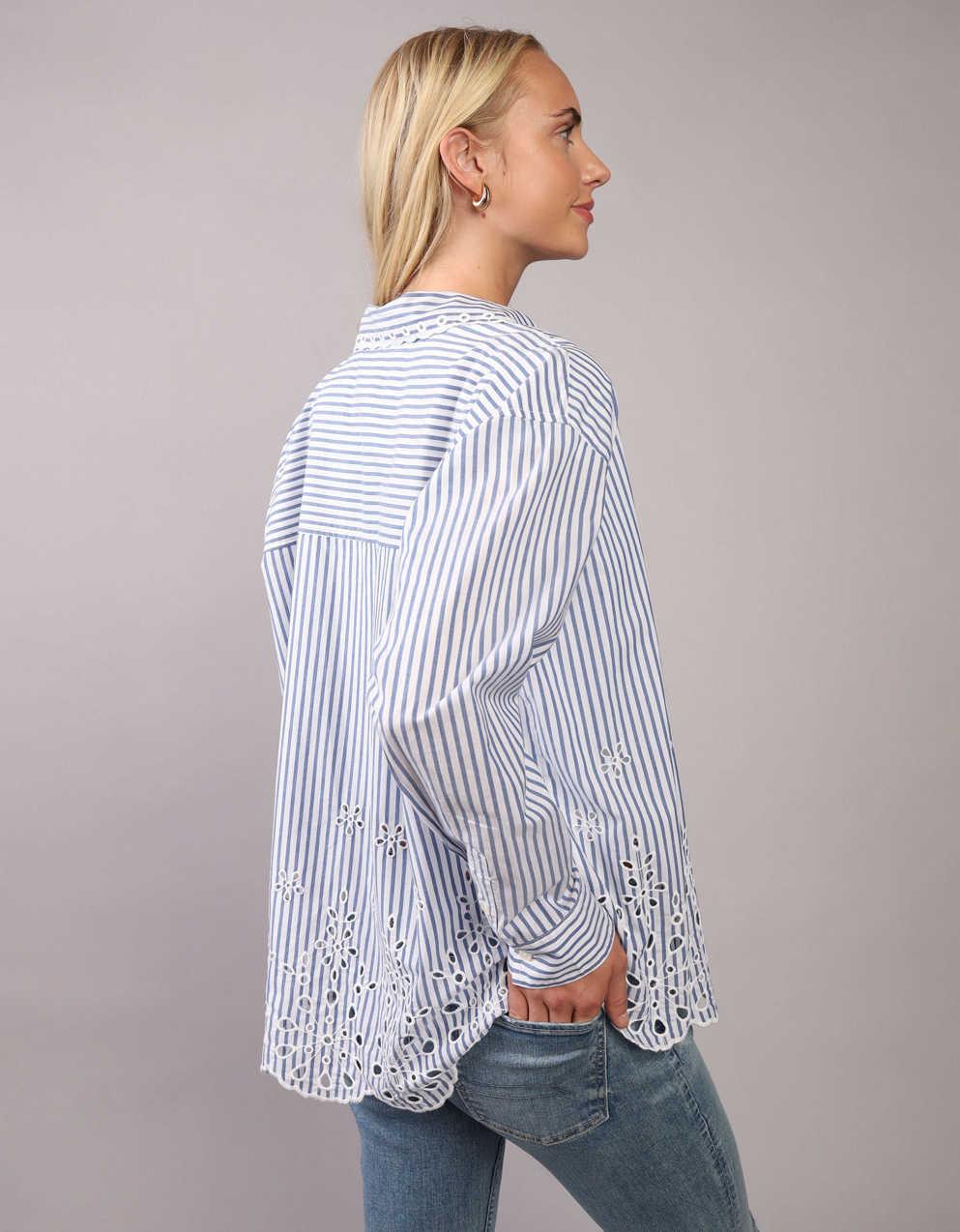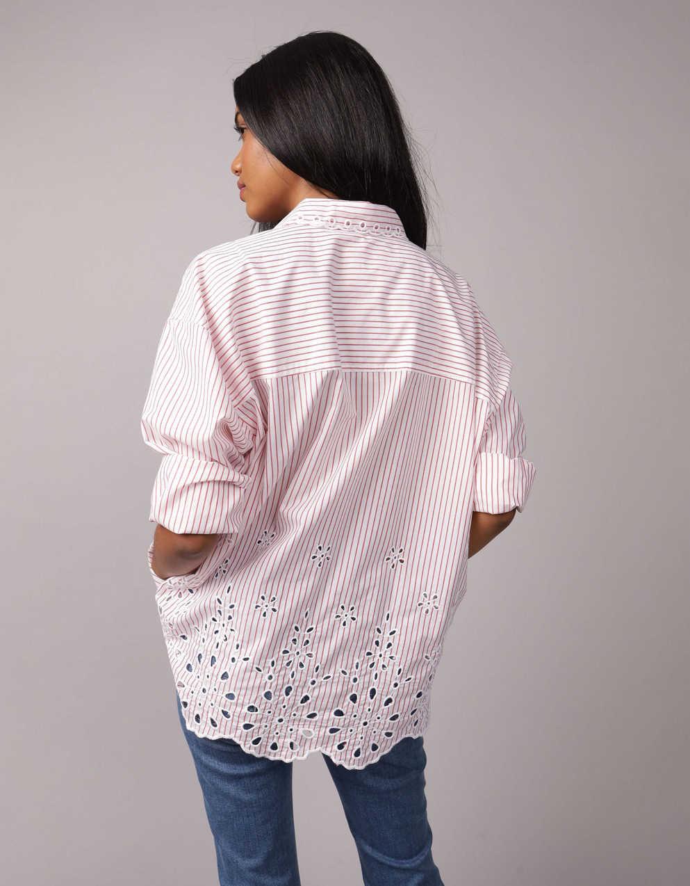 This oversized shirt is designed with embroidery details and a classic button-up front for a versatile everyday look. The structured collar enhances its tailored appearance, while the relaxed fit provides ease of styling. Suitable for layering or wearing on its own, this shirt combines functionality with refined details, making it an adaptable piece for various occasions.