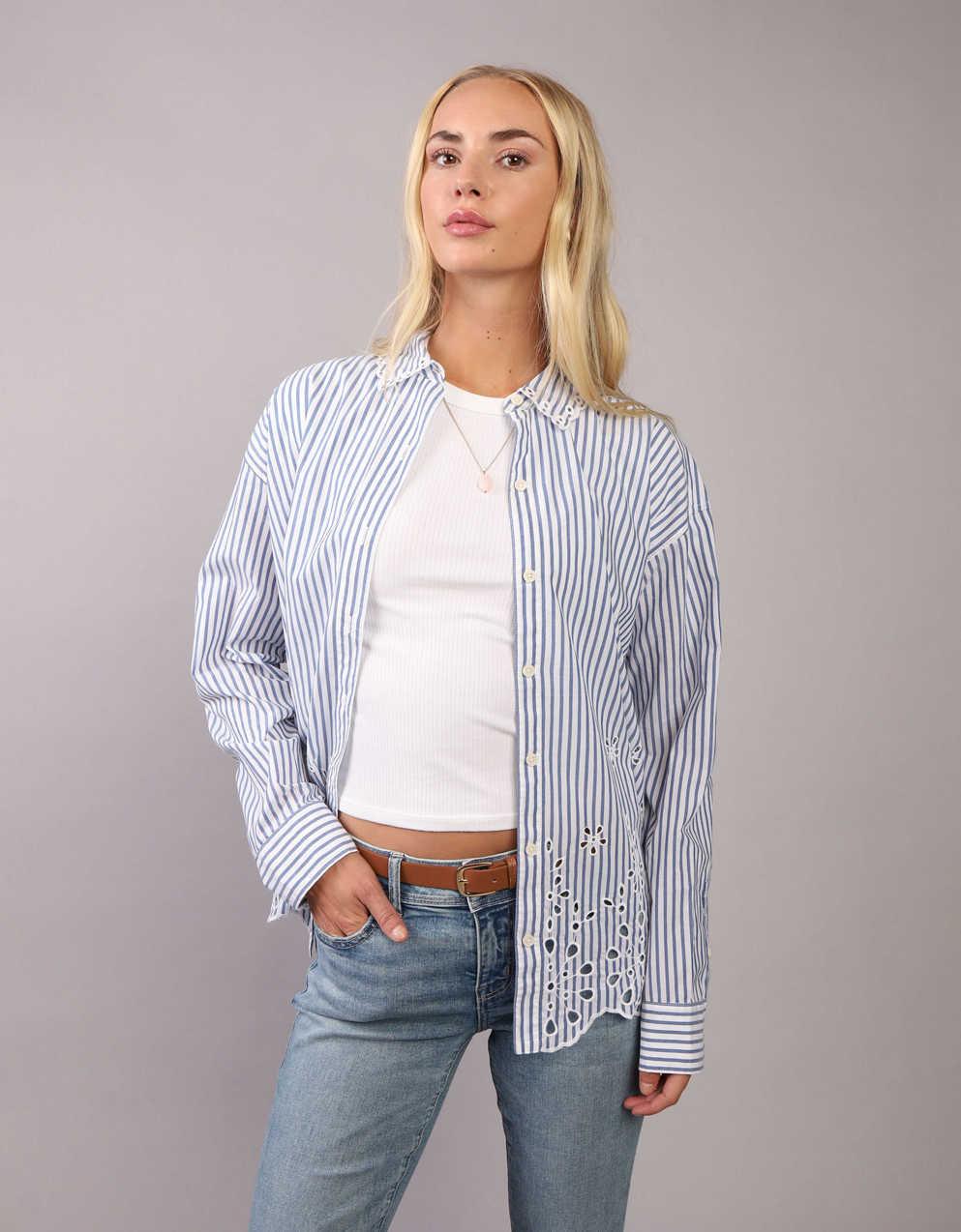 Women Button-Up Shirt With Embroidery And Collar