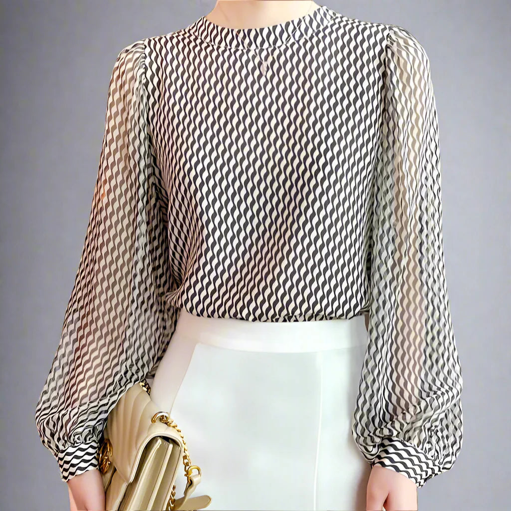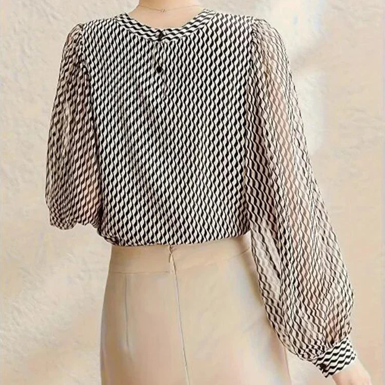 Women Blouse Chiffon Sheer Texture Relaxed Sleeves Tailored Hem