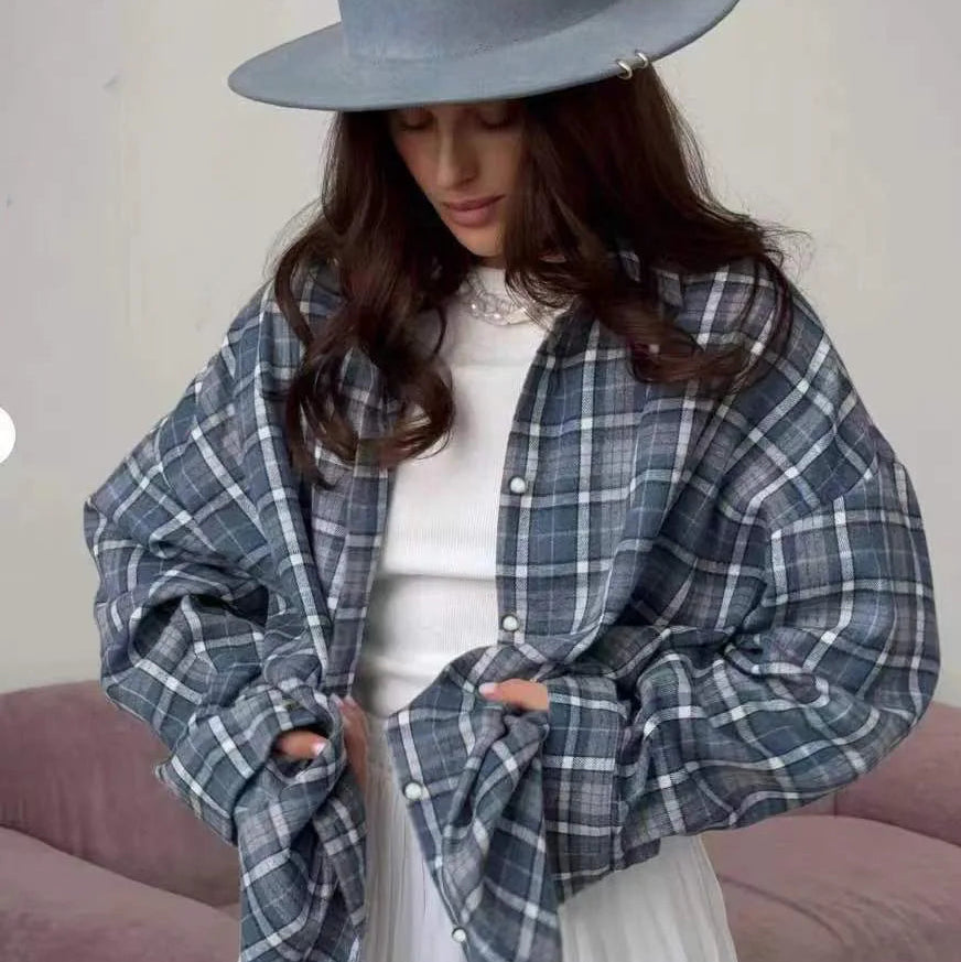 Women Winter Plaid Shirt Oversized Relaxed Fit Brushed Finish